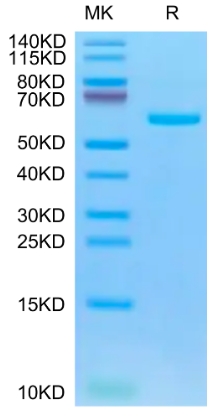 | Molecular Mass : | The protein has a predicted MW of 51.7 kDa. Due to glycosylation, the protein migrates to 60-62 kDa based on Tris-Bis PAGE result. |