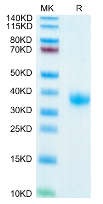 | Molecular Mass : | The protein has a predicted MW of 27 kDa. Due to glycosylation, the protein migrates to 36-40 kDa based on Tris-Bis PAGE result. |
