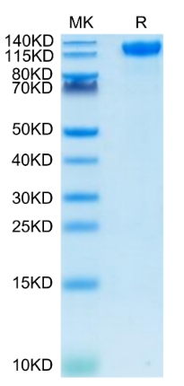 | Molecular Mass : | The protein has a predicted MW of 76.1 kDa. Due to glycosylation, the protein migrates to 115-140 kDa based on Tris-Bis PAGE result. |