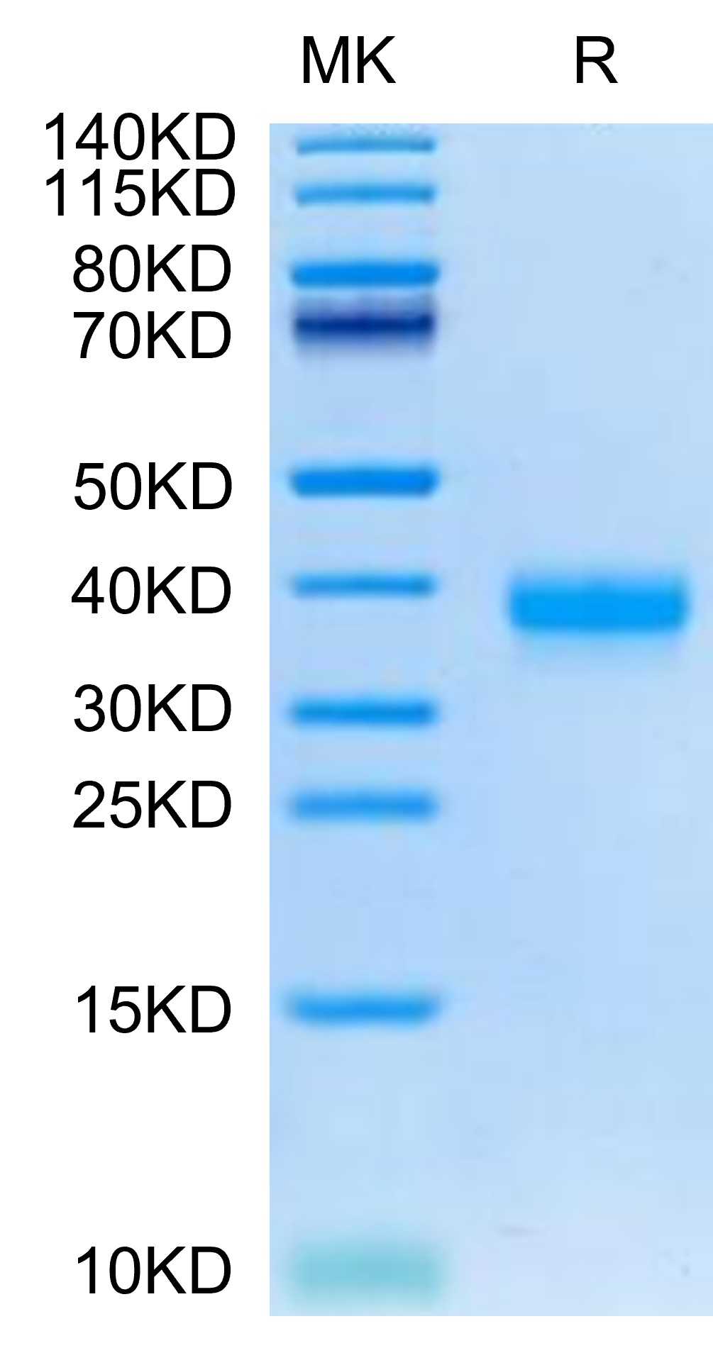 | Molecular Mass : | The protein has a predicted MW of 28.46 kDa. Due to glycosylation, the protein migrates to 35-40 kDa based on Tris-Bis PAGE result. |