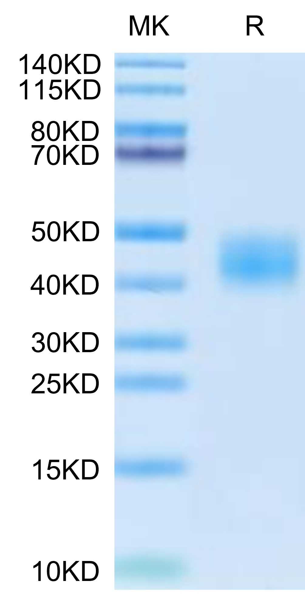 | Molecular Mass : | The protein has a predicted MW of 32.04 kDa. Due to glycosylation, the protein migrates to 40-50 kDa based on Tris-Bis PAGE result. |