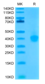 Molecular Mass : | The protein has a predicted MW of 26 kDa. Due to glycosylation, the protein migrates to 35-45 kDa based on Tris-Bis PAGE result. |