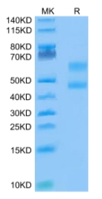 The protein has a predicted MW of 36.9 kDa (CD3E) and 35.4 kDa (CD3D). Due to glycosylation, the protein migrates to 58-62 kDa and 44-46 kDa based on Tris-Bis PAGE result. |