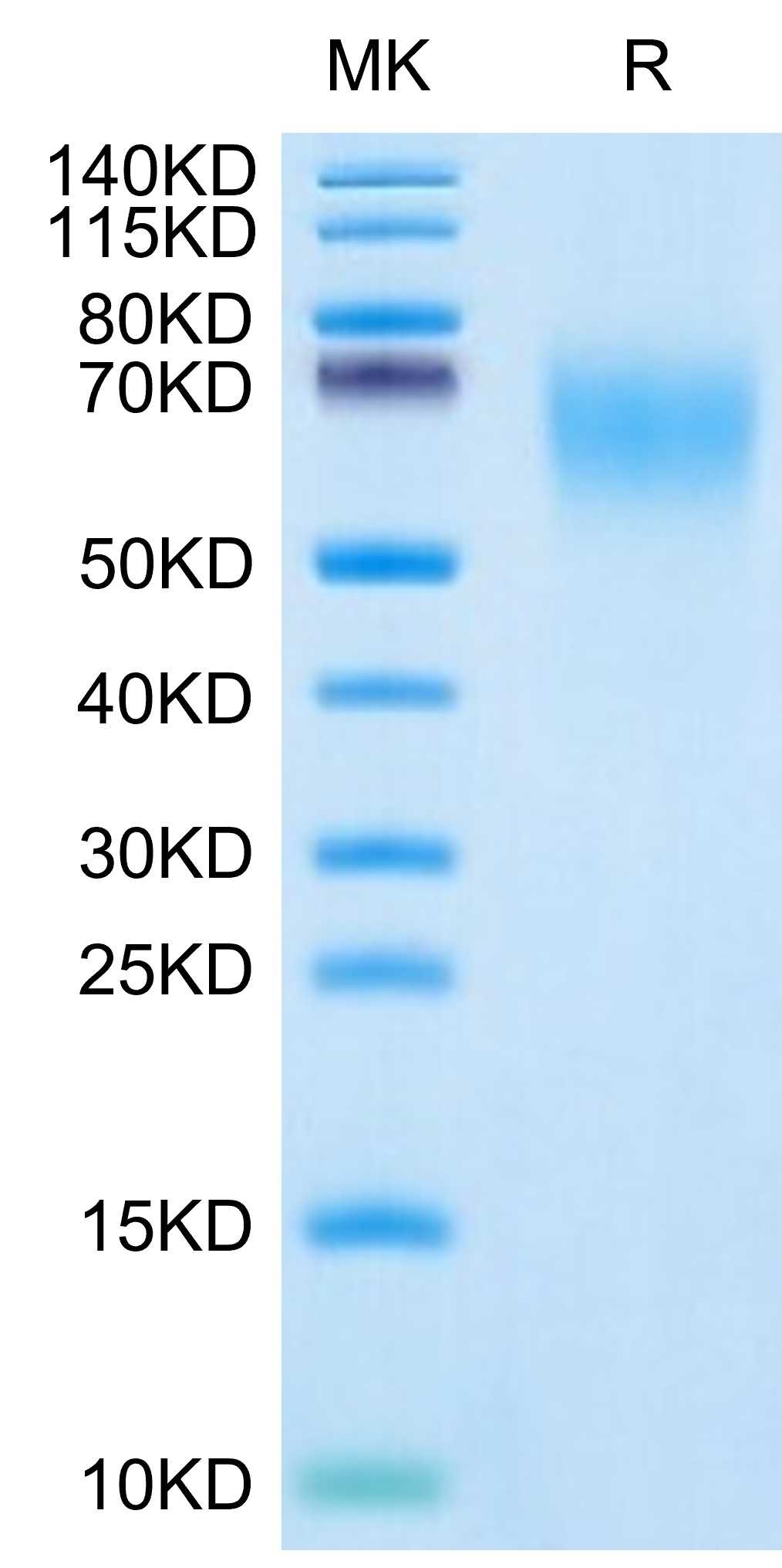 | Molecular Mass : | The protein has a predicted MW of 32.73 kDa. Due to glycosylation, the protein migrates to 55-70 kDa based on Tris-Bis PAGE result. |