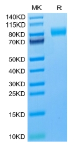 | Molecular Mass : | The protein has a predicted MW of 56.3 kDa. Due to glycosylation, the protein migrates to 75-105 kDa based on Tris-Bis PAGE result. |