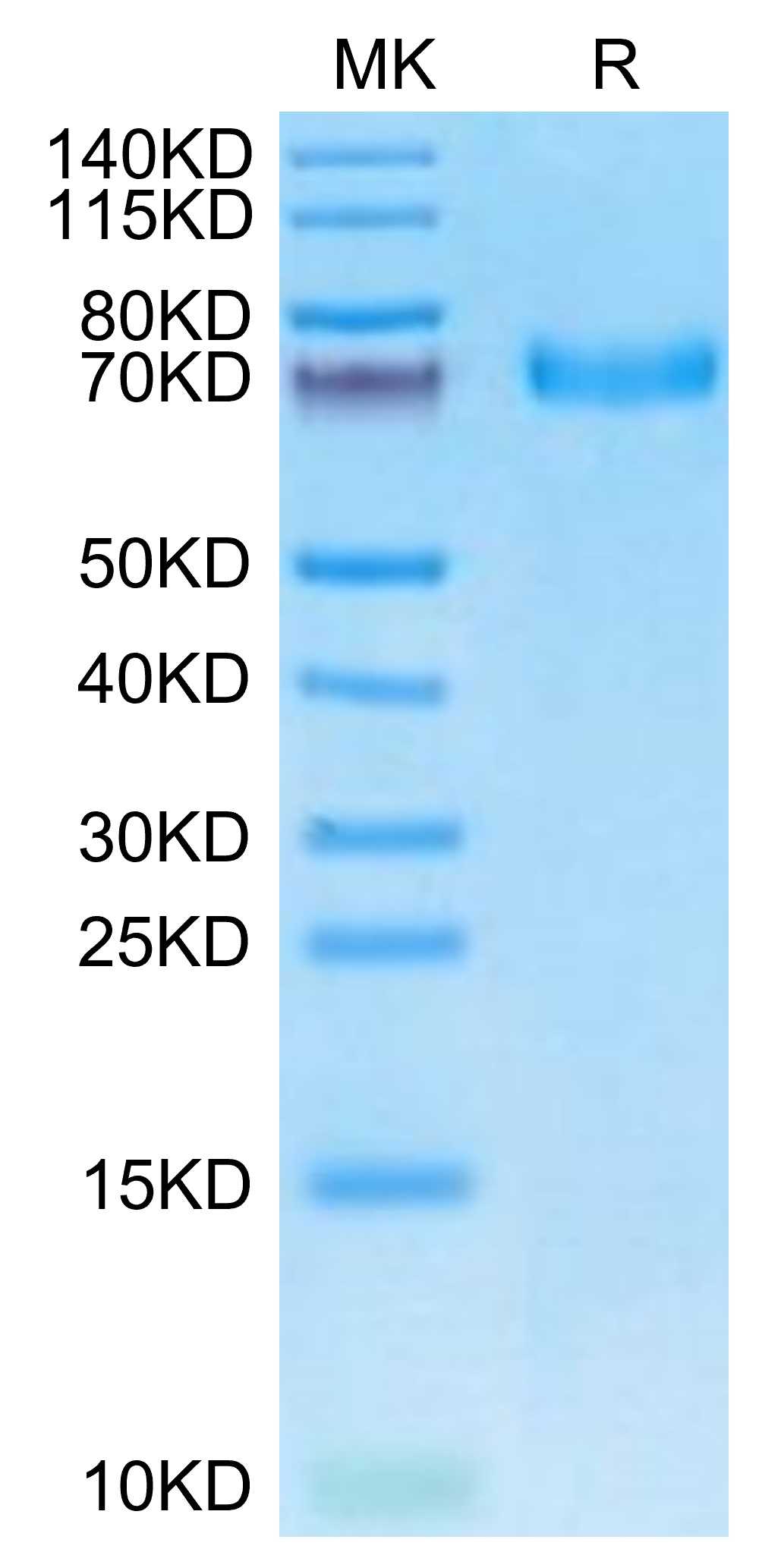 | Molecular Mass : | The protein has a predicted MW of 61.73 kDa. Due to glycosylation, the protein migrates to 70-75kDa based on Tris-Bis PAGE result. |