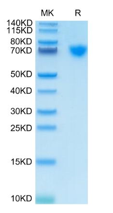 | Molecular Mass : | The protein has a predicted MW of 47.2 kDa. Due to glycosylation, the protein migrates to 60-75 kDa based on Tris-Bis PAGE result. |