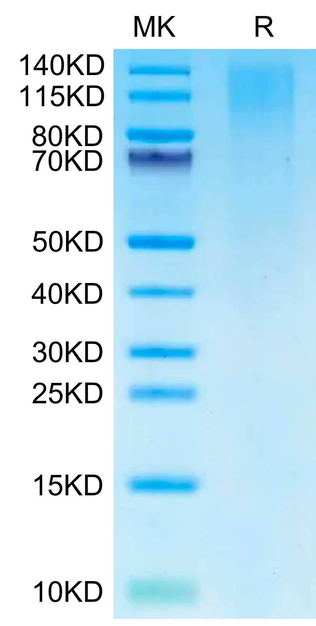 | Molecular Mass : | The protein has a predicted MW of 35.25 kDa. Due to glycosylation, the protein migrates to 100-150 kDa based on Tris-Bis PAGE result. |