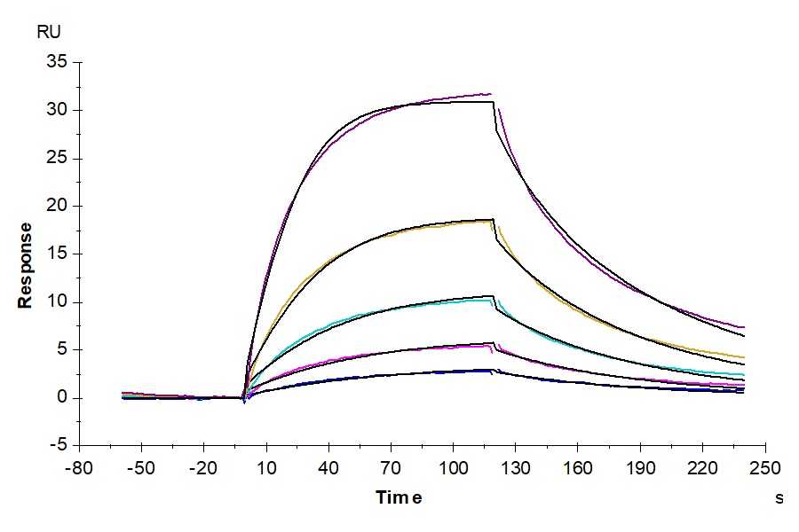 Cynomolgus IFN alpha/beta R2, His Tag captured on CM5 Chip via anti-his antibody can bind Human IFN alpha 1, hFc Tag with an affinity constant of 70.28 nM as determined in SPR assay (Biacore T200). |
