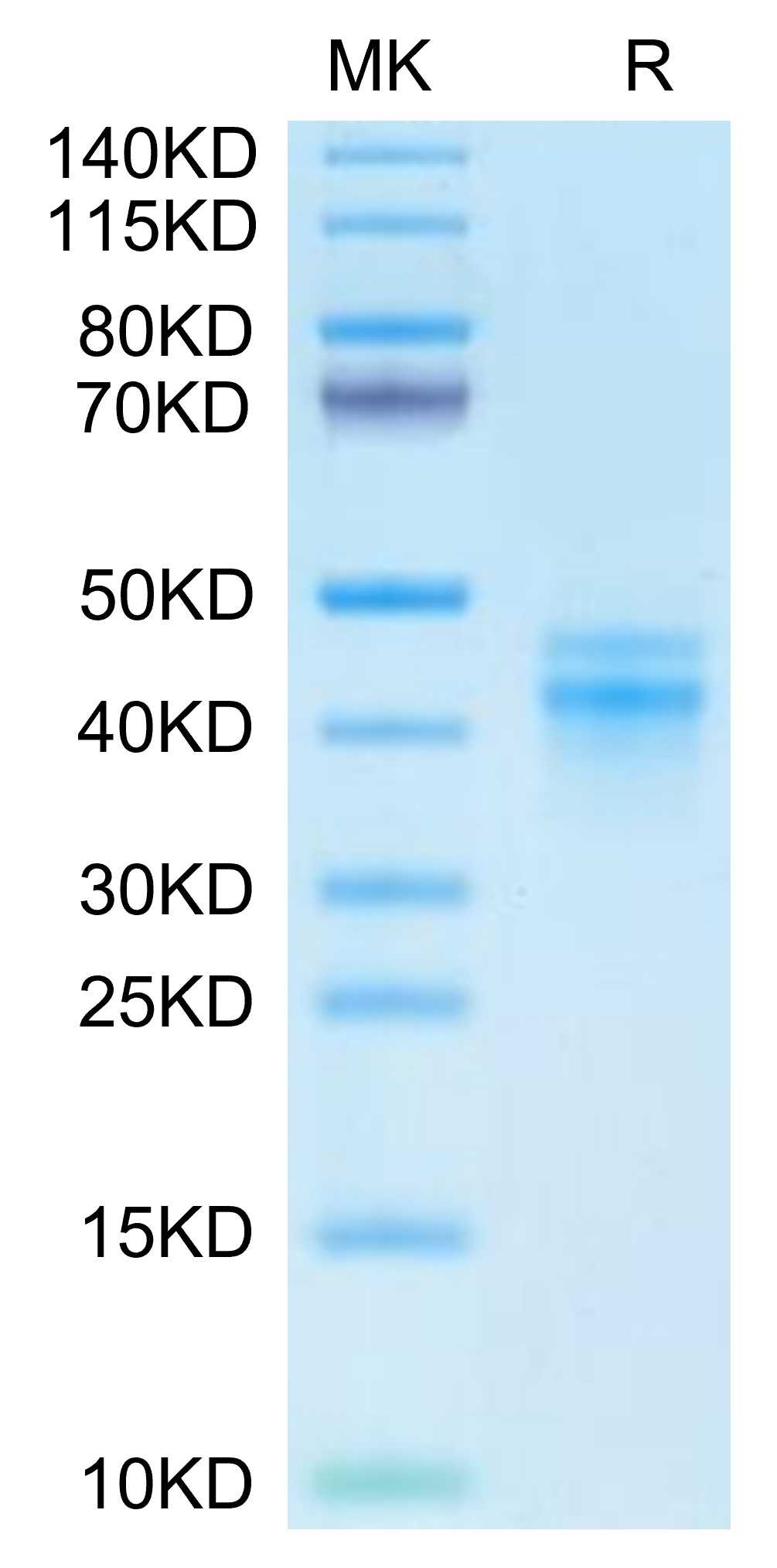Molecular Mass : | The protein has a predicted MW of 34.76 kDa (IL-12B) and 23.64 kDa (IL-12A). Due to glycosylation, the protein migrates to 45-48 kDa (IL-12B) and 38-44 kDa (IL-12A) based on Tris-Bis PAGE result. |