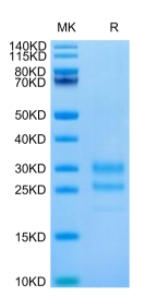 Molecular Mass : | The protein has a predicted MW of 18.2 kDa. Due to glycosylation, the protein migrates to 26-32 kDa based on Tris-Bis PAGE result. |