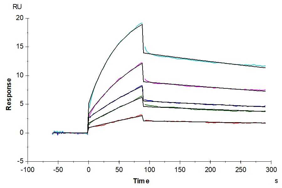 Human IL-1 RII, hFc Tag captured on CM5 Chip via Protein A can bind Cynomolgus IL-1 Beta, His Tag with an affinity constant of 1.40 nM as determined in SPR assay (Biacore T200). |