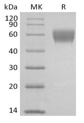 | Molecular Mass : | The recombinant Cynomolgus KLRK1 Protein has a predicted molecular mass of 42.4kDa, it migrates with an apparent molecular mass of 50-70kDa under reducing conditions. |