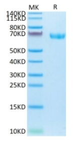 | Molecular Mass : | The protein has a predicted MW of 48.2 kDa. Due to glycosylation, the protein migrates to 60-70 kDa based on Tris-Bis PAGE result. |
