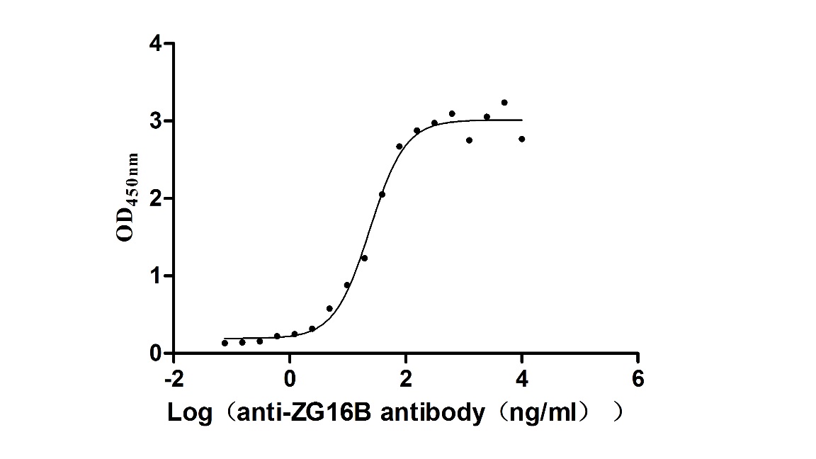 Measured by its binding ability in a functional ELISA. Immobilized Macaca fascicularis ZG16B at 2 μg/mL can bind Anti-ZG16B recombinant antibody, the EC50 is 20.15-28.98 ng/mL. |