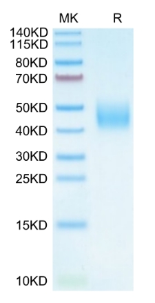 | Molecular Mass : | The protein has a predicted MW of 27.6 kDa. Due to glycosylation, the protein migrates to 40-52 kDa based on Tris-Bis PAGE result. |