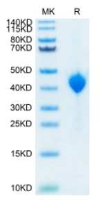 Molecular Mass : The protein has a predicted MW of 35.9 kDa. Due to glycosylation, the protein migrates to 38-48 kDa based on Tris-Bis PAGE result.