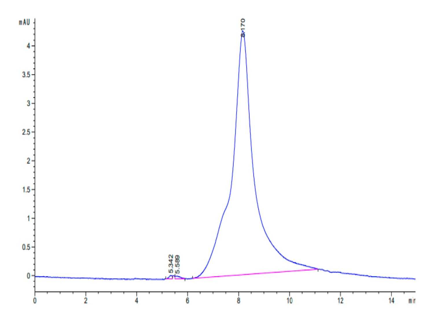 | Molecular Mass : | The protein has a predicted MW of 41.82 kDa. Due to glycosylation, the protein migrates to 50-65 kDa based on Tris-Bis PAGE result. |