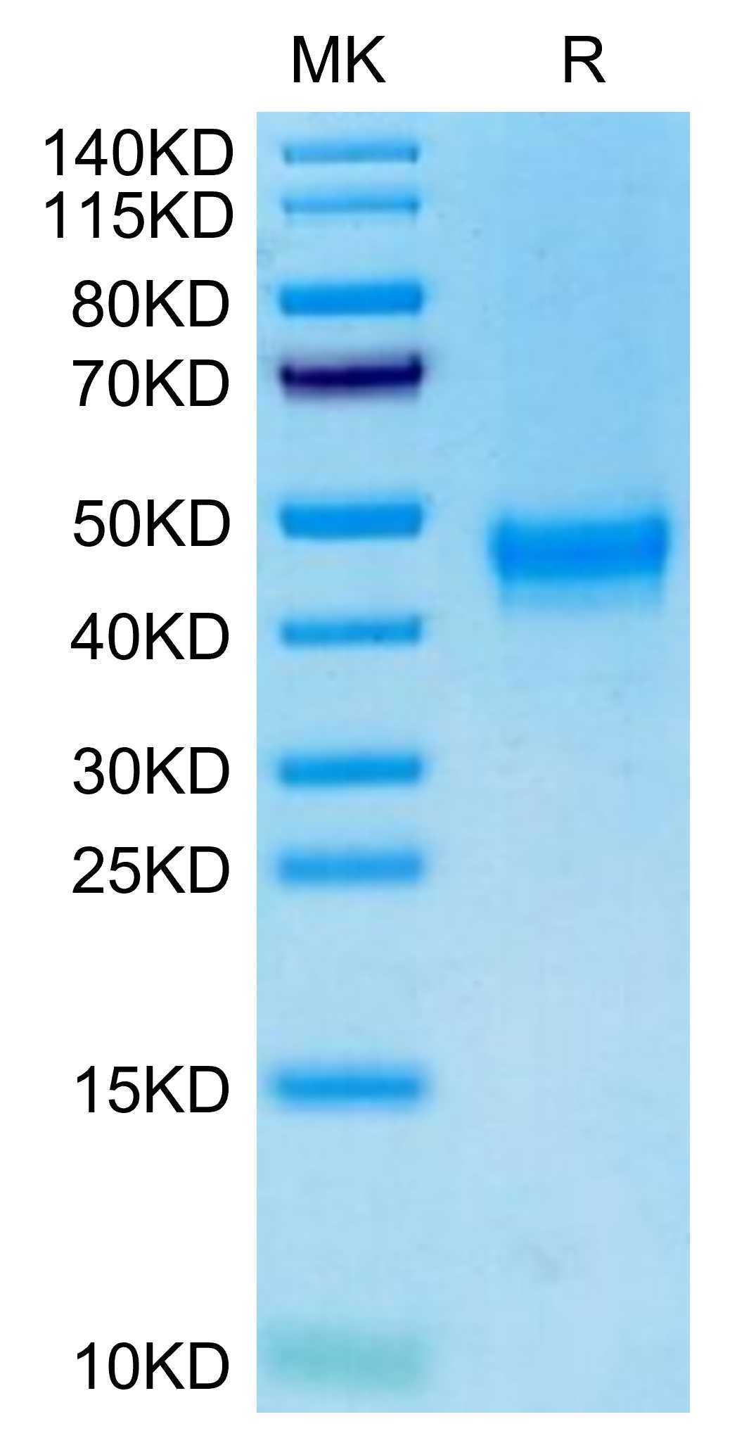 Molecular Mass : | The protein has a predicted MW of 26.85 kDa. Due to glycosylation, the protein migrates to 40-50 kDa based on Tris-Bis PAGE result. |