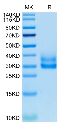| Molecular Mass : | The protein has a predicted MW of 18.4 kDa. Due to glycosylation, the protein migrates to 30-40 kDa based on Tris-Bis PAGE result. |