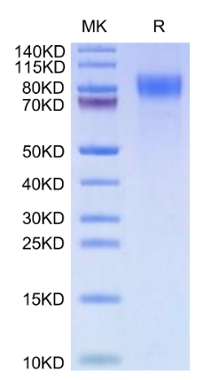 | Molecular Mass : | The protein has a predicted MW of 39.86 kDa. Due to glycosylation, the protein migrates to 75-105 kDa based on Bis-Tris PAGE result. |