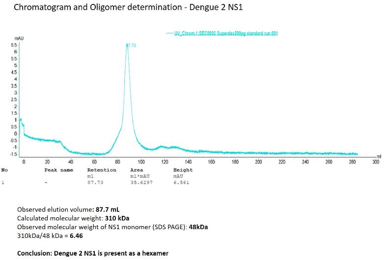 | Product Overview : | Recombinant Dengue Virus serotype 2 NS1 protein (752-1127) hexamer, incorporating a C-terminal 6×His-tag, produced in mammalian HEK293 cells at greater than 95% purity. |
