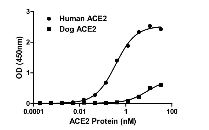 The protein encoded by this gene belongs to the angiotensin-converting enzyme family of dipeptidyl carboxydipeptidases and has considerable homology to human angiotensin 1 converting enzyme. This secreted protein catalyzes the cleavage of angiotensin I into angiotensin 1-9, and angiotensin II into the vasodilator angiotensin 1-7. ACE2 is known to be expressed in various human organs, and its organ- and cell-specific expression suggests that it may play a role in the regulation of cardiovascular and renal function, as well as fertility. In addition, the encoded protein is a functional receptor for the spike glycoprotein of the human coronavirus HCoV-NL63 and the human severe acute respiratory syndrome coronaviruses, SARS-CoV and SARS-CoV-2, the latter is the causative agent of coronavirus disease-2019 (COVID-19). Multiple splice variants have been found for this gene and the dACE2 (or MIRb-ACE2) splice variant has been found to be interferon inducible. |