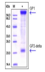 Molecular Mass : | The protein has a calculated MW of 67.0 kDa. The reducing (R) protein migrates as 21-23 kDa (GP2-delta) and 110-120 kDa (GP1) in SDS-PAGE. |