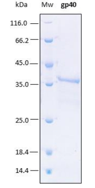 | Description : | gp40 -is a transmembrane glycoprotein responsible for viral membrane fusion with the host cell membrane. The gp40 subunit contains different functional regions in its ectodomain: the fusion peptide (FP), heptad repeat 1 (HR1), HR2, and the transmembrane region. This protein is very similar to gp41 from HIV. The sequence of gp40 contains four functional regions, as follows: the N-terminal fusion peptide (which is thought to insert into the host cell membrane) is followed by an ectodomain, a transmembrane region and a cytoplasmic domain. |