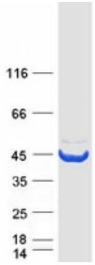 Recombinant protein was captured through anti-DDK affinity column followed by conventional chromatography steps. |