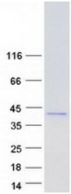 Recombinant protein was captured through anti-DDK affinity column followed by conventional chromatography steps. |