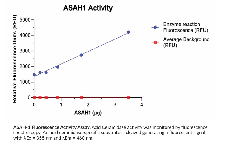 | Product Overview : | Active recombinant human N-terminal His-tagged ASAH1 expressed in insect cells. |