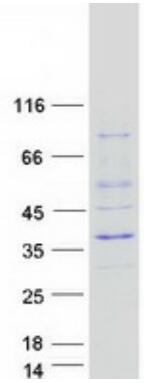 Recombinant protein was captured through anti-DDK affinity column followed by conventional chromatography steps. |