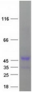 | Purity : | > 80% as determined by SDS-PAGE and Coomassie blue staining. |