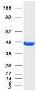> 80% as determined by SDS-PAGE and Coomassie blue staining. |