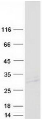 Dermatopontin is an extracellular matrix protein with possible functions in cell-matrix interactions and matrix assembly. The protein is found in various tissues and many of its tyrosine residues are sulphated. Dermatopontin is postulated to modify the behavior of TGF-beta through interaction with decorin. |