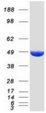 > 80% as determined by SDS-PAGE and Coomassie blue staining. |