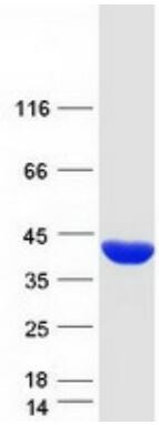Recombinant protein was captured through anti-DDK affinity column followed by conventional chromatography steps. |