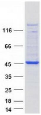 > 80% as determined by SDS-PAGE and Coomassie blue staining. |