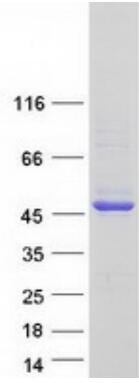> 80% as determined by SDS-PAGE and Coomassie blue staining. |