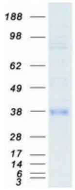 > 80% as determined by SDS-PAGE and Coomassie blue staining. |
