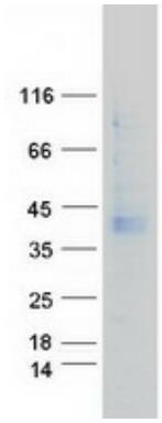 > 80% as determined by SDS-PAGE and Coomassie blue staining. |