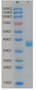Molecular Mass : | Predicted Molecular Mass: 27 kDa SDS-PAGE: Multiple bands between 38-40 kDa, reducing conditions |