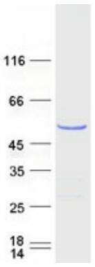 Recombinant protein was captured through anti-DDK affinity column followed by conventional chromatography steps. |