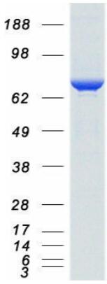> 80% as determined by SDS-PAGE and Coomassie blue staining. |
