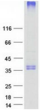 > 80% as determined by SDS-PAGE and Coomassie blue staining. |