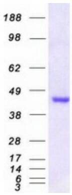 > 80% as determined by SDS-PAGE and Coomassie blue staining. |