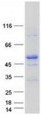 Recombinant protein was captured through anti-DDK affinity column followed by conventional chromatography steps. |
