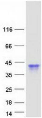 Preparation : | Recombinant protein was captured through anti-DDK affinity column followed by conventional chromatography steps. |