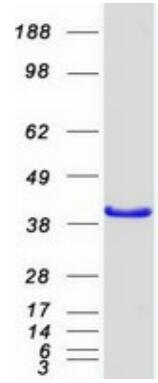 > 80% as determined by SDS-PAGE and Coomassie blue staining. |